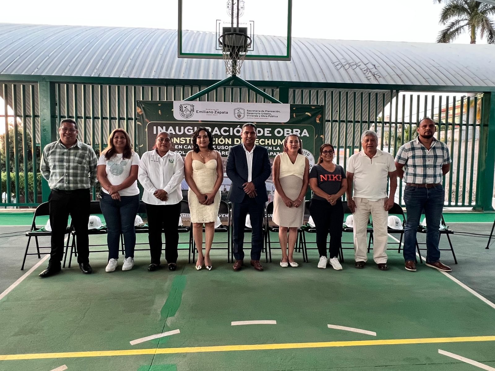 El Ayuntamiento de Emiliano Zapata, encabezado por el presidente municipal Santos Tavarez García, a través de la Secretaría de Planeación, Desarrollo Urbano, Vivienda y Obra Pública, llevó a cabo la inauguración de la obra de construcción de techumbre en la cancha de usos múltiples de la colonia Benito Juárez, un proyecto que fortalece la infraestructura deportiva y comunitaria del municipio.