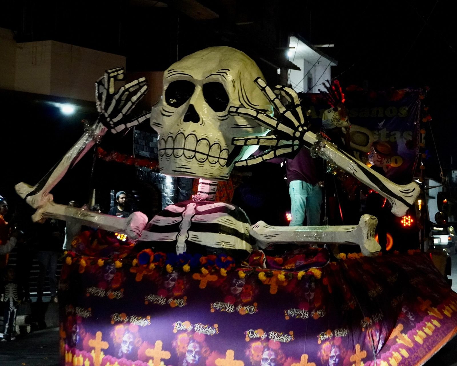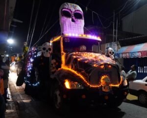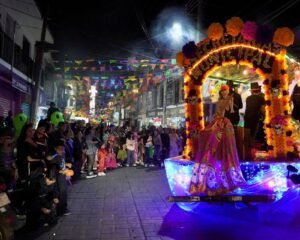 El recorrido inició en la comunidad de Tetecalita y culminó en la colonia Tres de Mayo, donde familias completas se reunieron para disfrutar del paso de los carros decorados con motivos alusivos al Día de Muertos, acompañados por una banda de viento que amenizó el ambiente durante todo el trayecto.