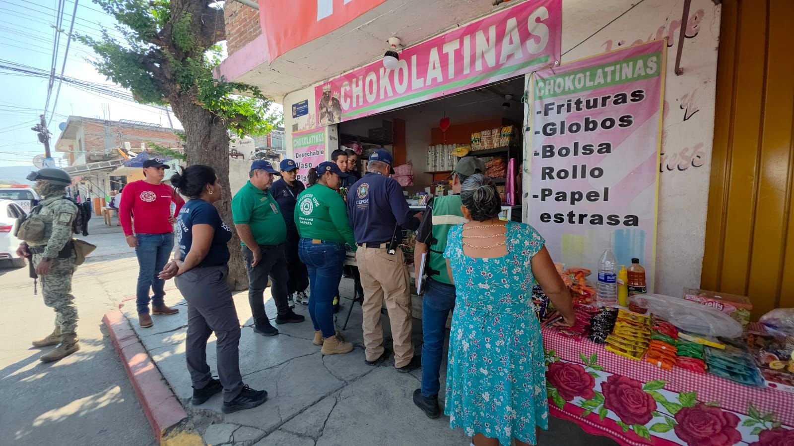 La mañana del lunes, en punto de las 11:30 horas, se llevó a cabo un recorrido preventivo por los principales puntos comerciales del municipio de Emiliano Zapata, con el objetivo de emitir recomendaciones a las y los comerciantes sobre la prohibición de la venta de pirotecnia y cualquier tipo de material explosivo.
