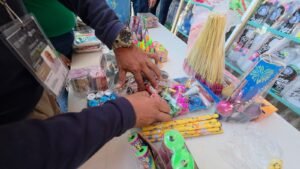 Durante el recorrido, las autoridades informaron que todo artículo considerado explosivo es retirado de manera inmediata del punto de venta y devuelto a los propios comerciantes propietarios, dejando la observación correspondiente.