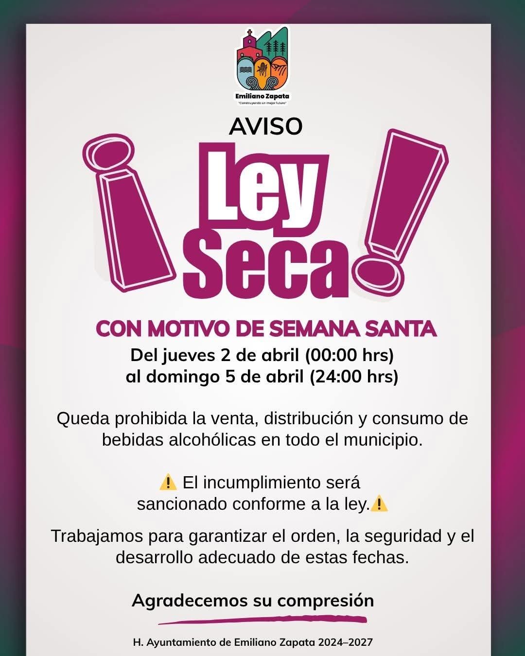 El edil anunció la implementación de ley seca a partir del viernes, medida con la que se busca disminuir el consumo de alcohol y evitar conductas que alteren la convivencia social. El edil subrayó que esta disposición permitirá mantener un ambiente de respeto y tranquilidad, reduciendo riesgos y fortaleciendo la seguridad durante los días de mayor actividad.
