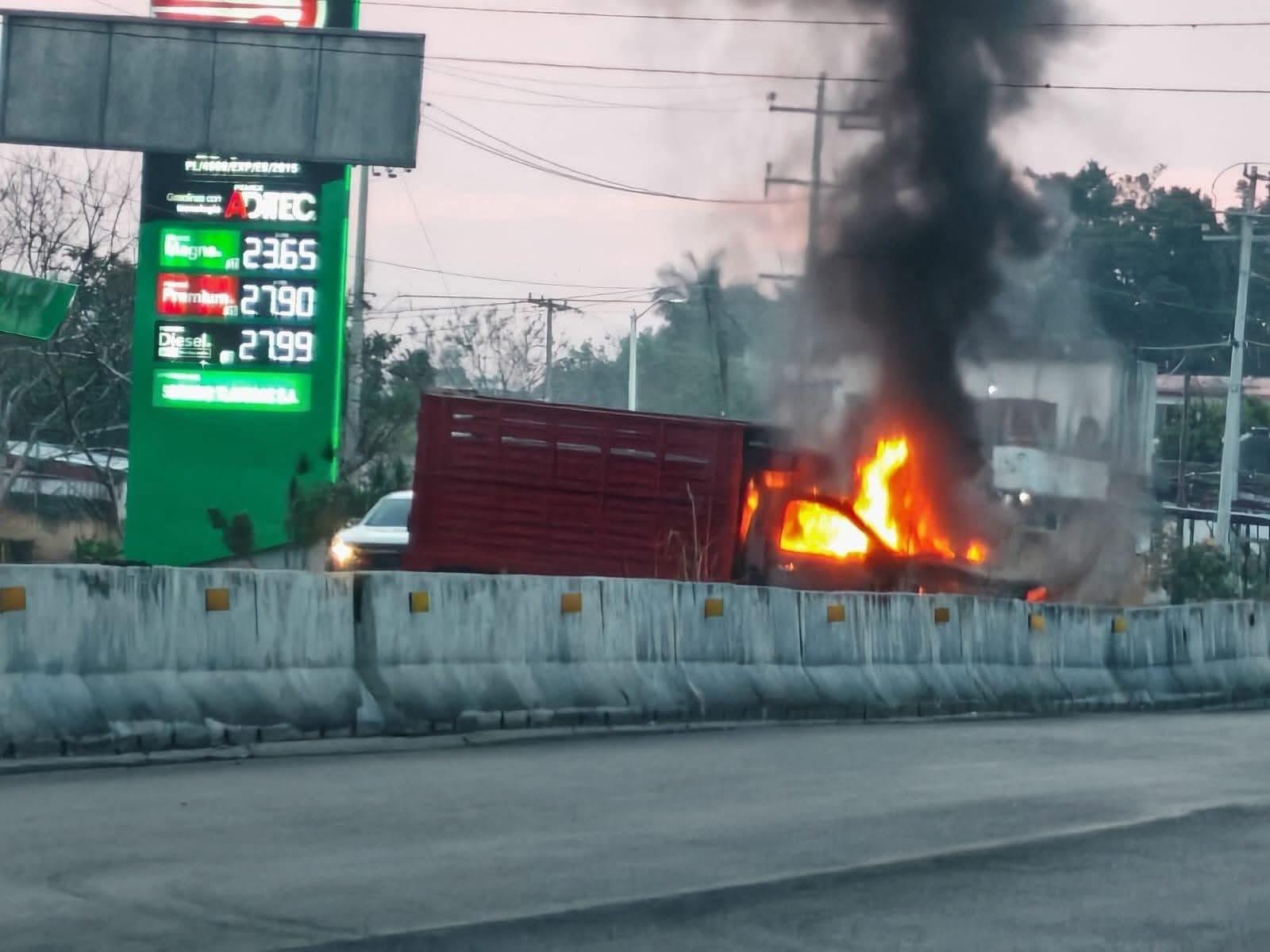 De acuerdo con los primeros reportes, una camioneta comenzó a incendiarse presuntamente a causa de una falla mecánica, cerca de la gasolinera ubicada antes de la entrada al Parque Industrial.