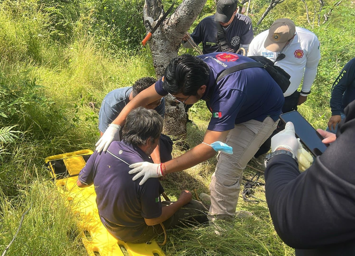 Personal de la Dirección de Protección Civil, Rescate y Bomberos de Emiliano Zapata, junto con elementos de la Coordinación Estatal de Protección Civil Morelos, llevaron a cabo el rescate exitoso de un hombre que cayó a un voladero en la colonia El Vigilante, la mañana de este martes.
