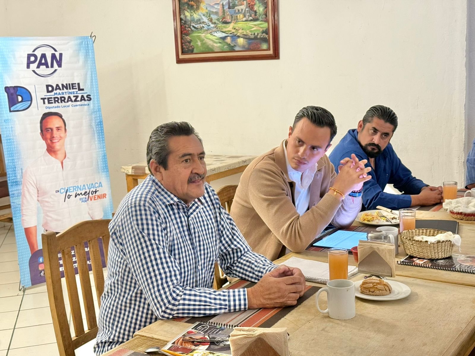 El diputado Daniel Martínez Terrazas, del Partido Acción Nacional (PAN), sostuvo una reunión con agrupaciones de taxistas de la zona metropolitana y los Altos de Morelos, con el objetivo de generar mesas de trabajo orientadas a fortalecer el sector del transporte en la entidad.