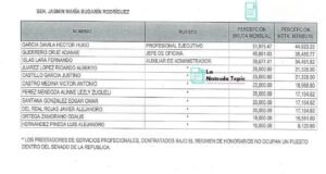 – Adanae Guerrero Cruz, jefe de oficina, con un salario bruto de 40 mil 881 pesos mensuales.