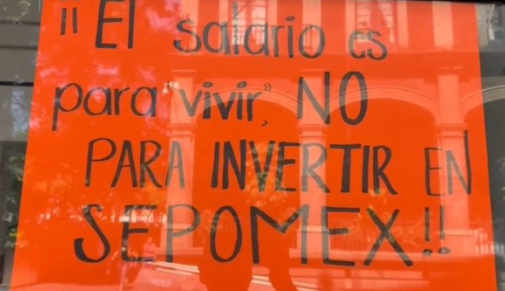 En algunas cartulinas colocadas en los ventanales de sepomex se puede leer, entre otras frases: “el salario es para vivir no para invertir”; “el abandono de sepomex nos afecta a todos”; “sufrimos el abandono de las autoridades del sepomex, exigimos respeto”, entre otras.