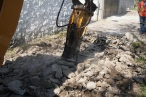 La diputada Jazmín Solano recorre calle Belén, ubicada en el centro del municipio de Temixco, supervisando el trabajo de pavimentación.