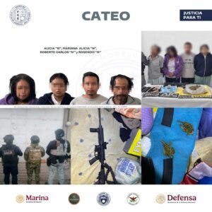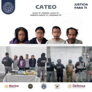 Los detenidos son Rosendo “N”, de 58 años; Roberto Carlos “N”, de 23 años; Mariana Alicia “N”, de 21 años; y Alicia “N”, de 50 años; quienes quedaron a disposición del agente del Ministerio Público (MP) especializado por delito contra la salud.