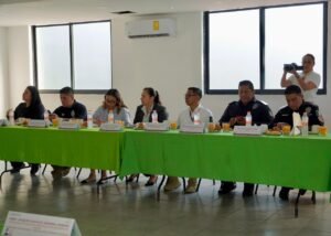 En representación del Presidente municipal, Santos Tavarez García, el Secretario del Ayuntamiento, Jorge Luis García Ocampo, acompañado por el secretario de Seguridad Pública y Tránsito Municipal, Rogelio Romero Nente, dio la bienvenida a las y los integrantes de la Mesa Técnica, encabezada por la licenciada Zuleyma Retiguin Arellano.