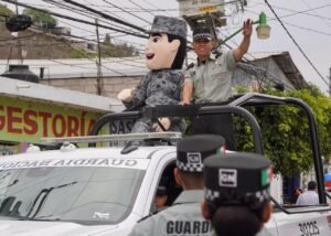 Asimismo, se contó con la presencia de elementos del Ejército Mexicano y la Guardia Nacional, quienes brindaron acompañamiento y seguridad, además de convivir con las familias durante la entrega de dulces y obsequios a niñas y niños.