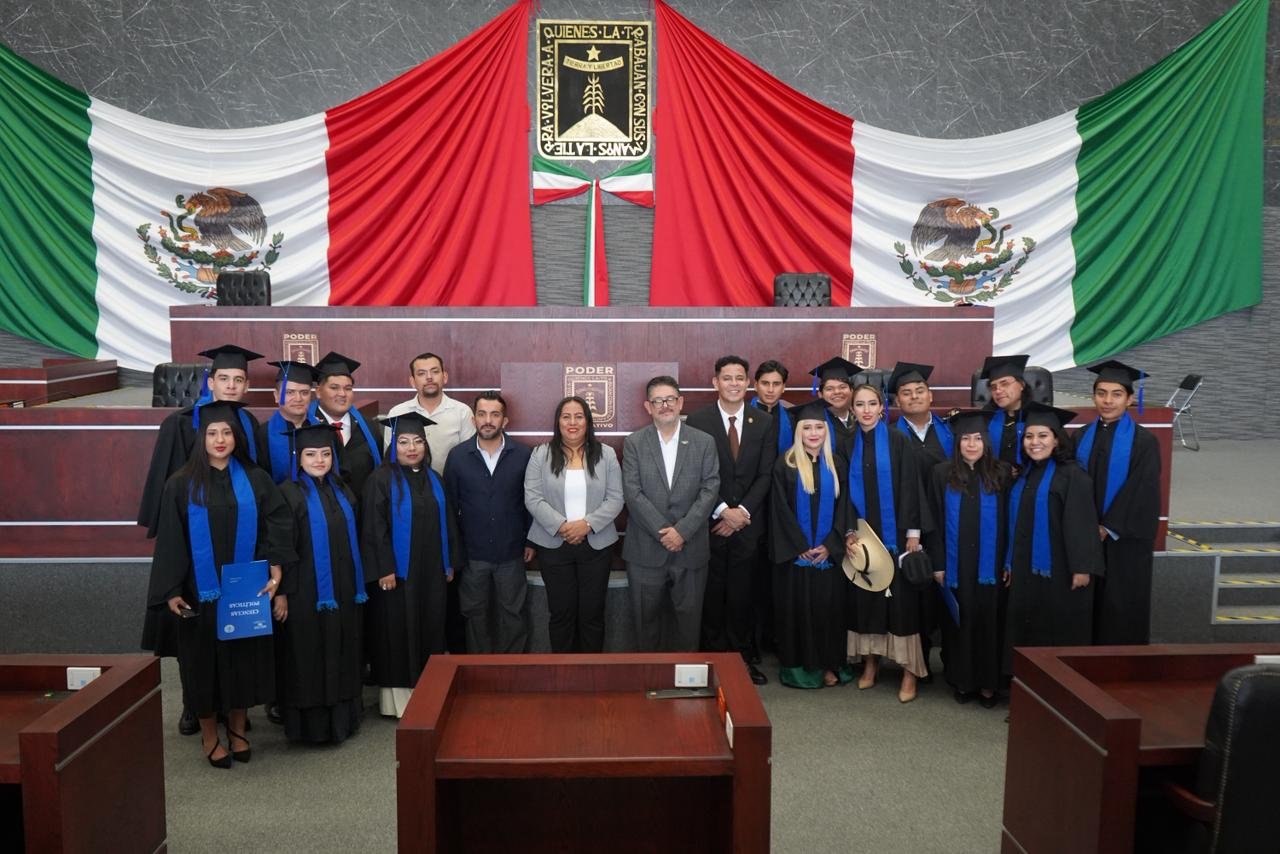 Durante el acto académico, que tuvo como marco el Salón de Plenos del Congreso del estado, Solano López reconoció el esfuerzo, la disciplina y la constancia de las y los jóvenes que culminaron su formación profesional en un contexto marcado por crisis sanitarias, tensiones sociales y profundas transformaciones políticas.