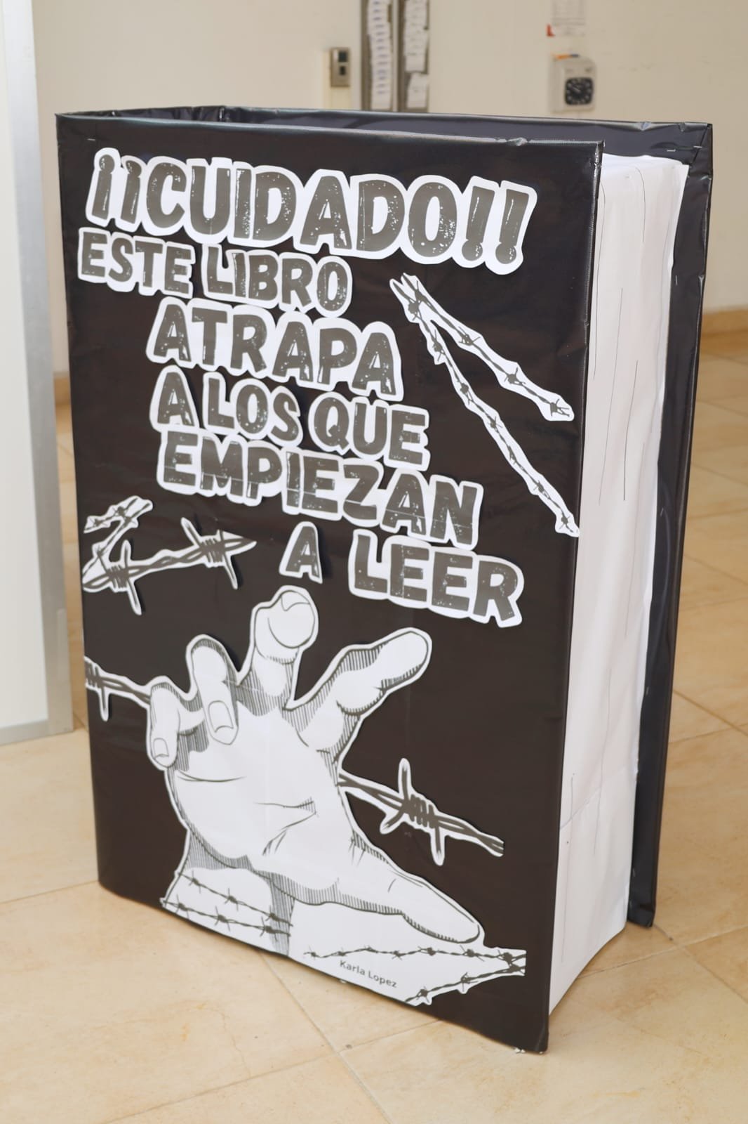 Se trata de una representación que busca concientizar a los usuarios sobre la importancia de cuidar los libros de la biblioteca, ya que un libro maltratado o mutilado sale de circulación, impidiendo que otros usuarios puedan consultarlo.