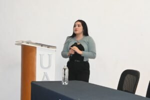 En representación de Humberto Flores Bustamante, encargado de despacho de la EES del Jicarero, la secretaria de Docencia, María de los Ángeles Núñez Puente, celebró el talento, la dedicación y la curiosidad por la investigación de las y los estudiantes participantes mediante el intercambio de ideas.