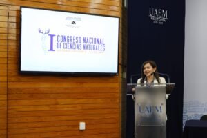 Durante su mensaje inaugural, la rectora de la UAEM, Viridiana Aydeé León Hernández, felicitó a la FCB y su directora por organizar este congreso y la valentía para su transformación, “estas actividades invitan a reflexionar sobre los avances para construir una comunidad académica más fuerte, unida y sostenible, especialmente en el ámbito de las ciencias naturales”.